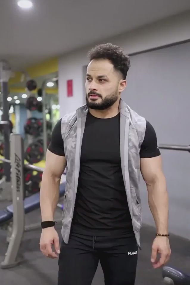 Shop Men's Black Fuaark Camo Sleeveless Jacket at Rs.1099 online only at Fuaark.